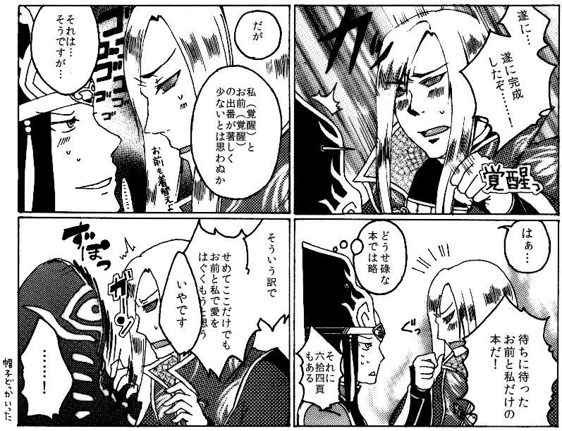 あ、上の漫画は当日配ったペーパーの一部です。覚醒は本当に可愛い。覚醒曹丕の厚手可愛さときたら。