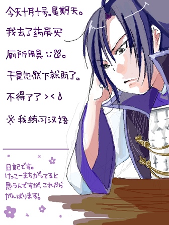 丕「今日は十月十日日曜日だ。私は薬局へ行ってトイレ用具を買った。(・v・)v